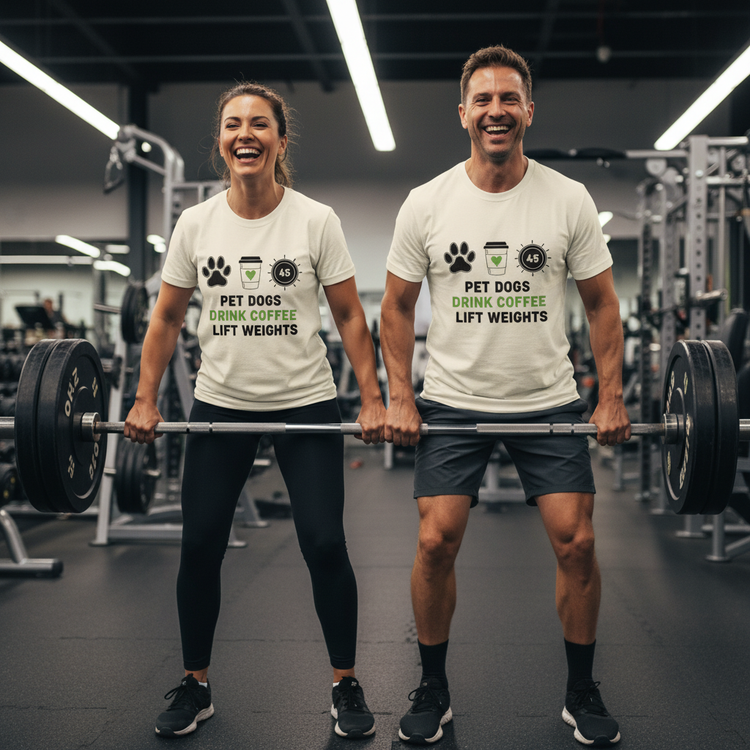 "Pet Dogs. Drink Coffee. Lift Weights." Classic Fit Heavyweight Cotton T-Shirt – Durable and Comfortable Casual Wear